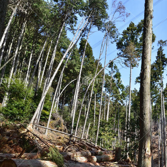 お客様がお持ちの山の樹木を弊社が購入し、伐採して運び出し市場で販売します。