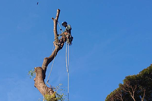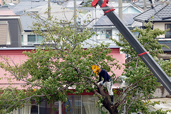 狭い場所や、大切な建物が近くにある場合、安全に樹木を伐採することの難易度は高くなります。 私たちはレスキューの技術を応用し、高い木を倒すことなく伐採することが可能です。